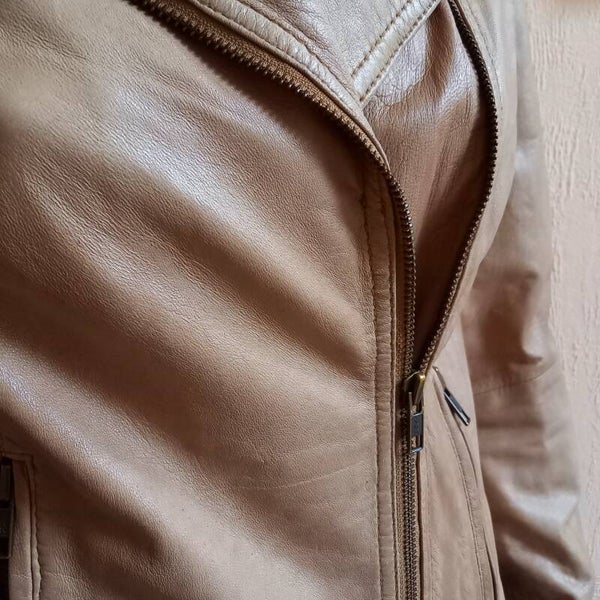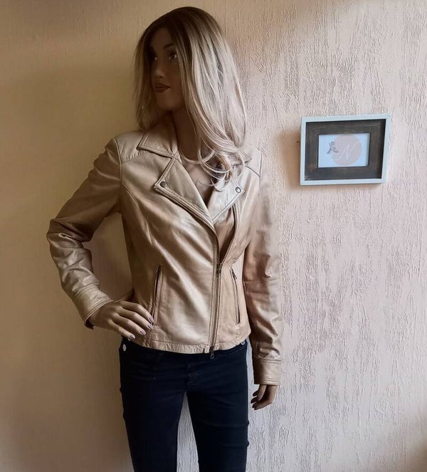 Echt lederen jasje van het merk La Ligbad in een zachte beige kleur.